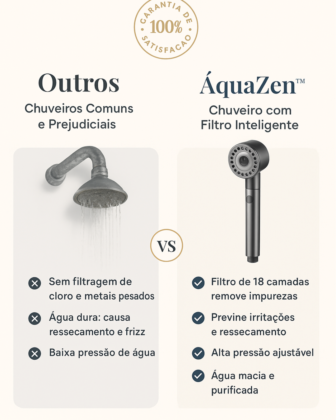 ✅ Filtro de 18 camadas: elimina cloro, ferrugem e metais pesados.